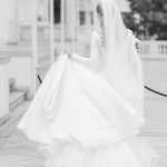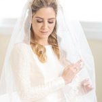 Juliana optou por um vestido de noiva La Modelista no estilo minimalista, com lindo decote nas costas e super elegante. A mantilha com renda delicada deu o toque final ao look e destacou ainda mais a beleza da noiva. Amamos todos os detalhes!