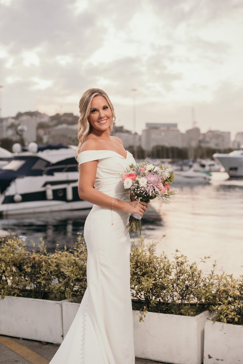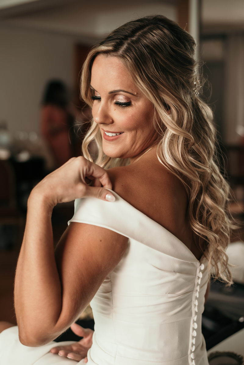 Juliana optou por um vestido minimalista super elegante, com detalhes bem delicados nas alças e lindos botões nas costas.  Sem falar da maquiagem perfeita da @noivaporjusaad que realçou ainda mais essa beleza única.