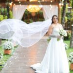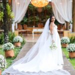 Mariáh estava divina de noiva! Ela escolheu um vestido de noiva La Modelista para o seu grande dia. O vestido trazia a modelagem princesa clássica com um corpete estruturado tipo corselet que desenha a silhueta com precisão. O decote tomara que caia em formato diferenciado valorizou o colo e os ombros com elegância atemporal. A saia é o grande destaque: volumosa e dramática, ela se abre a partir da cintura, leve e com movimento, permitindo lindas fotos.