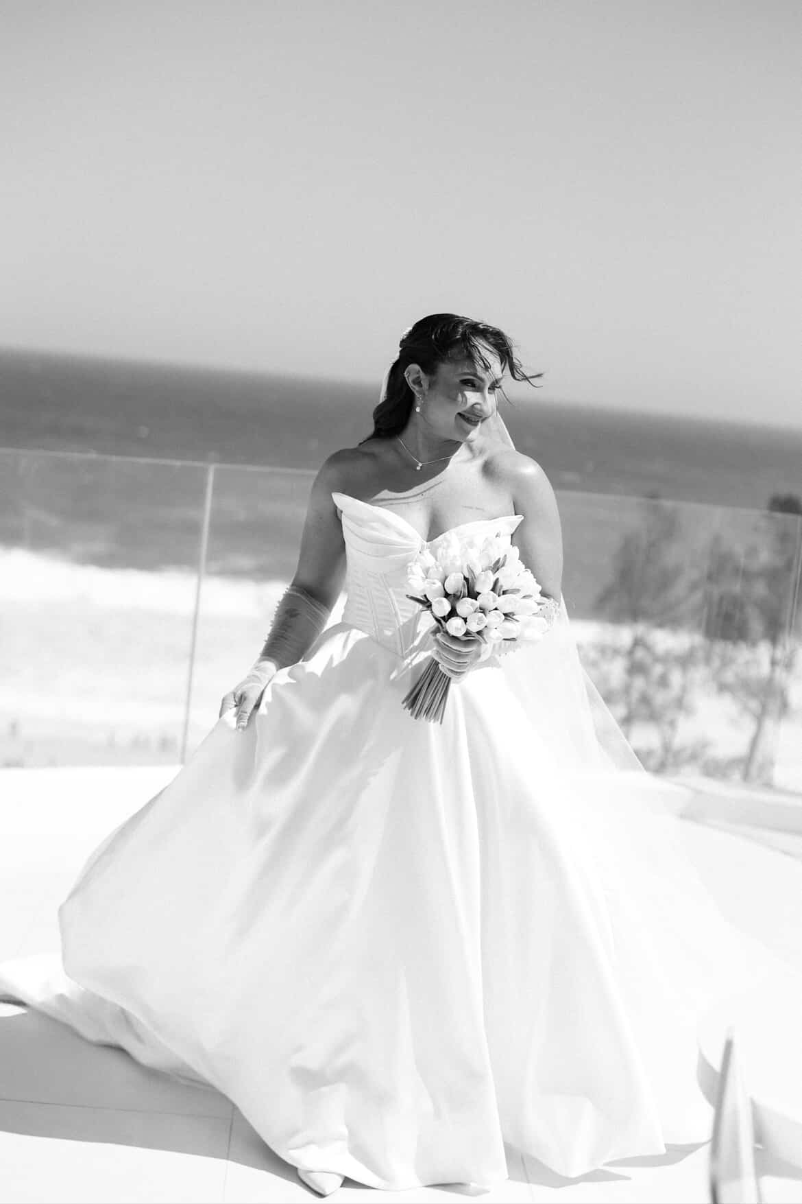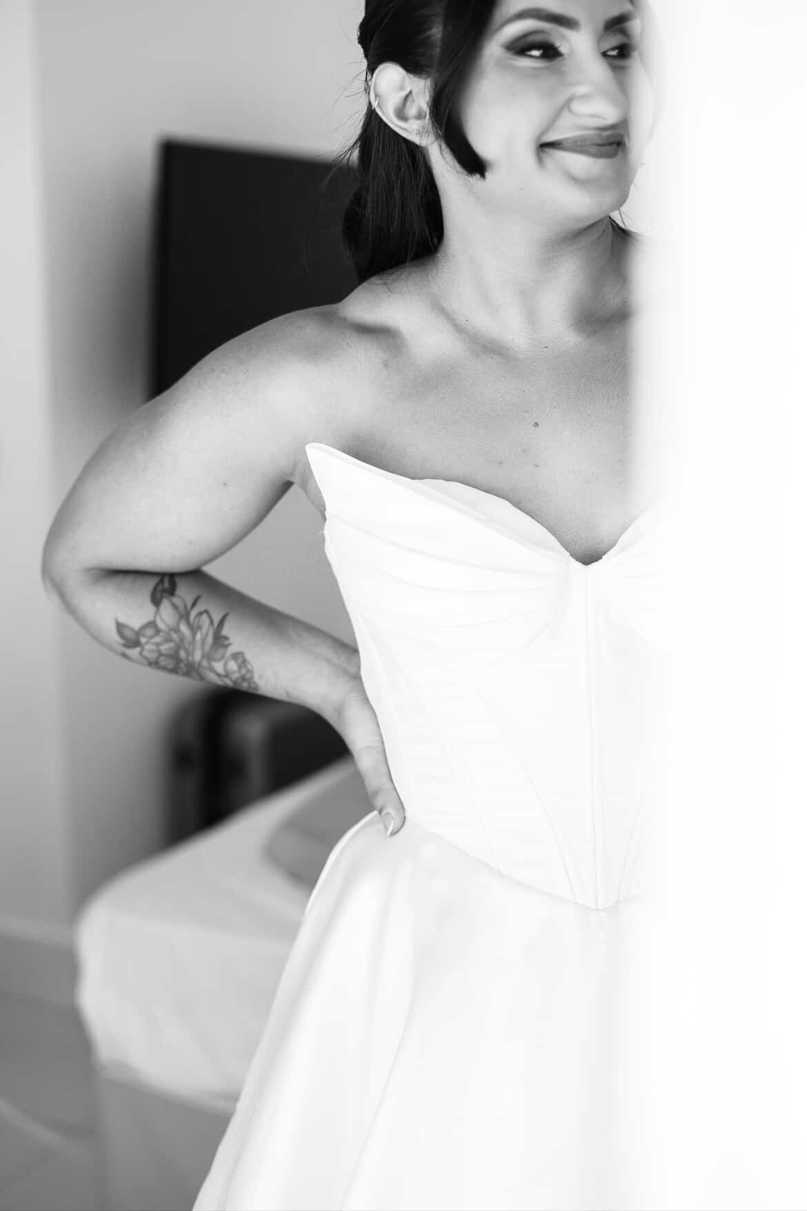 Mariáh estava divina de noiva! Ela escolheu um vestido de noiva La Modelista para o seu grande dia. O vestido trazia a modelagem princesa clássica com um corpete estruturado tipo corselet que desenha a silhueta com precisão. O decote tomara que caia em formato diferenciado valorizou o colo e os ombros com elegância atemporal. A saia é o grande destaque: volumosa e dramática, ela se abre a partir da cintura, leve e com movimento, permitindo lindas fotos.