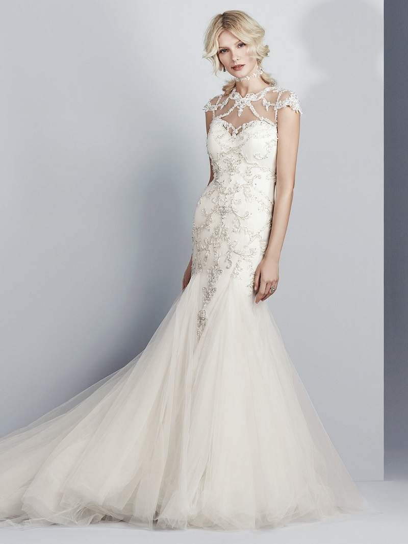 Bastante jovial, o corte sereia com alças largas e decote em bico é uma das escolhas mais populares entre as noivas brasileiras.