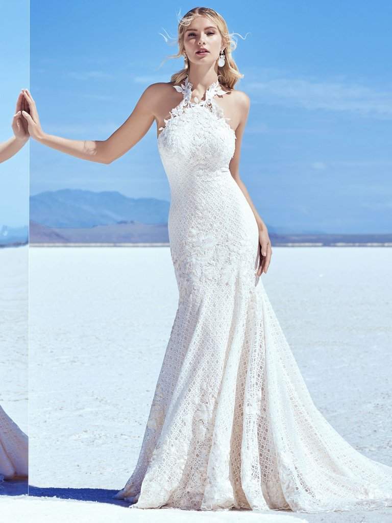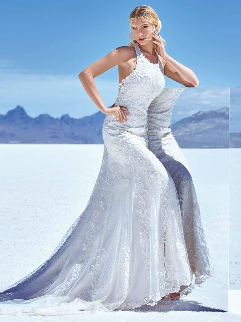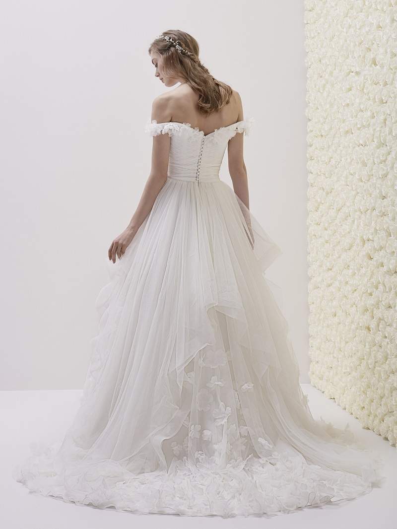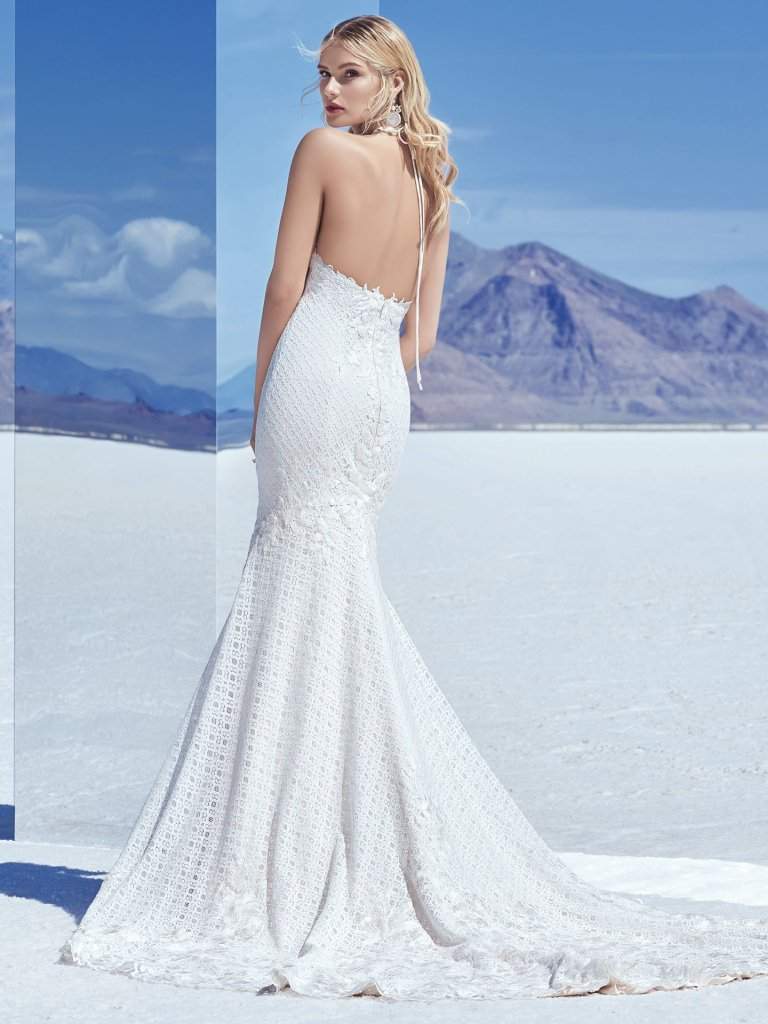 Ainda no estilo de costas nuas, essa peça tem uma proposta um pouco diferente, mas ainda sim muito moderna, graças à sua fluidez. É perfeito para as noivas que vão se casar ao ar livre ou que fazem questão de um vestido de casamento com muito movimento.